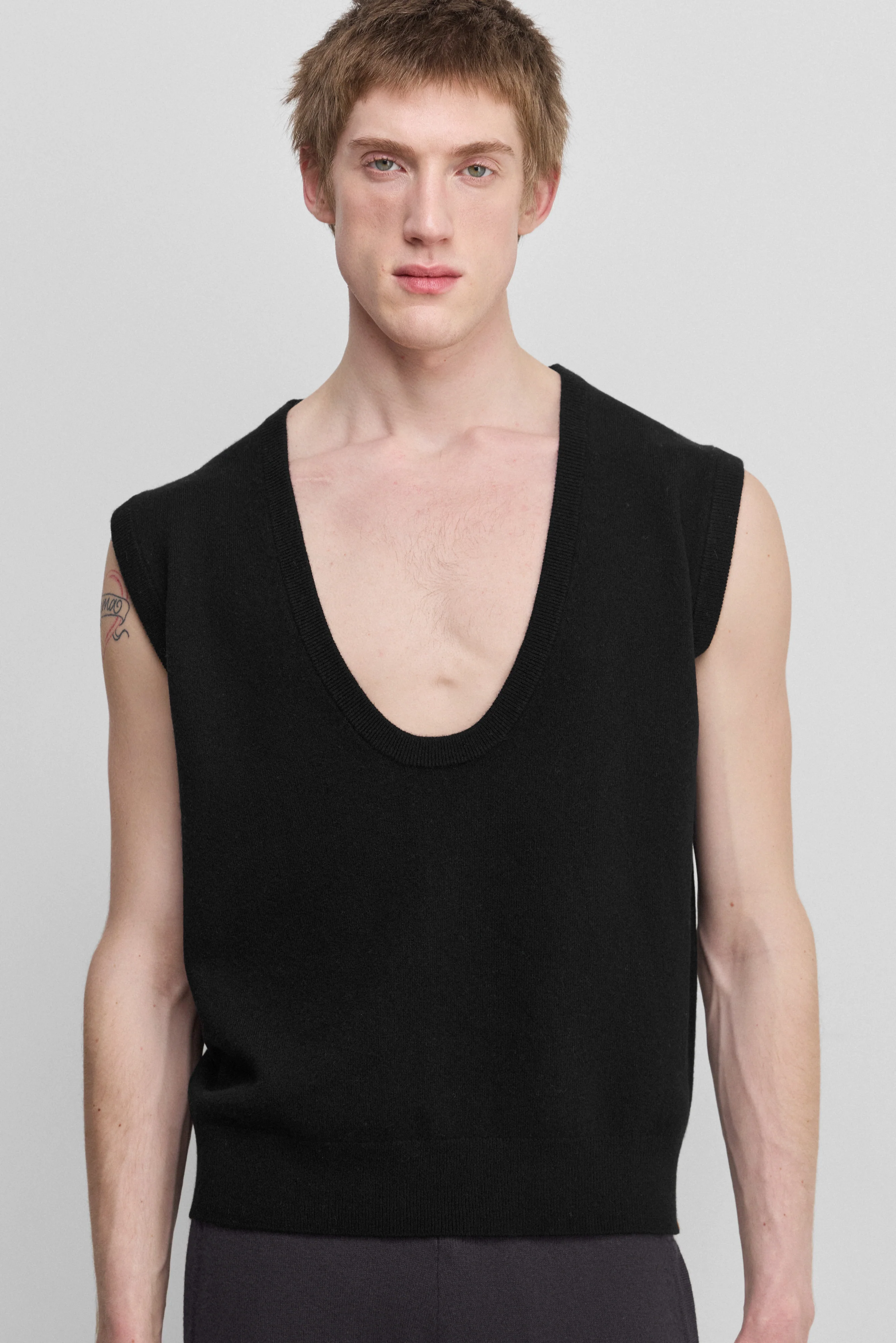 a sleeveless version of the jacob, the lord is a comfort fit cashmere sweater vest with a deep scoop neckline. Ideal for layering, this versatile style features a ribbed hem and ribbed armhole details.