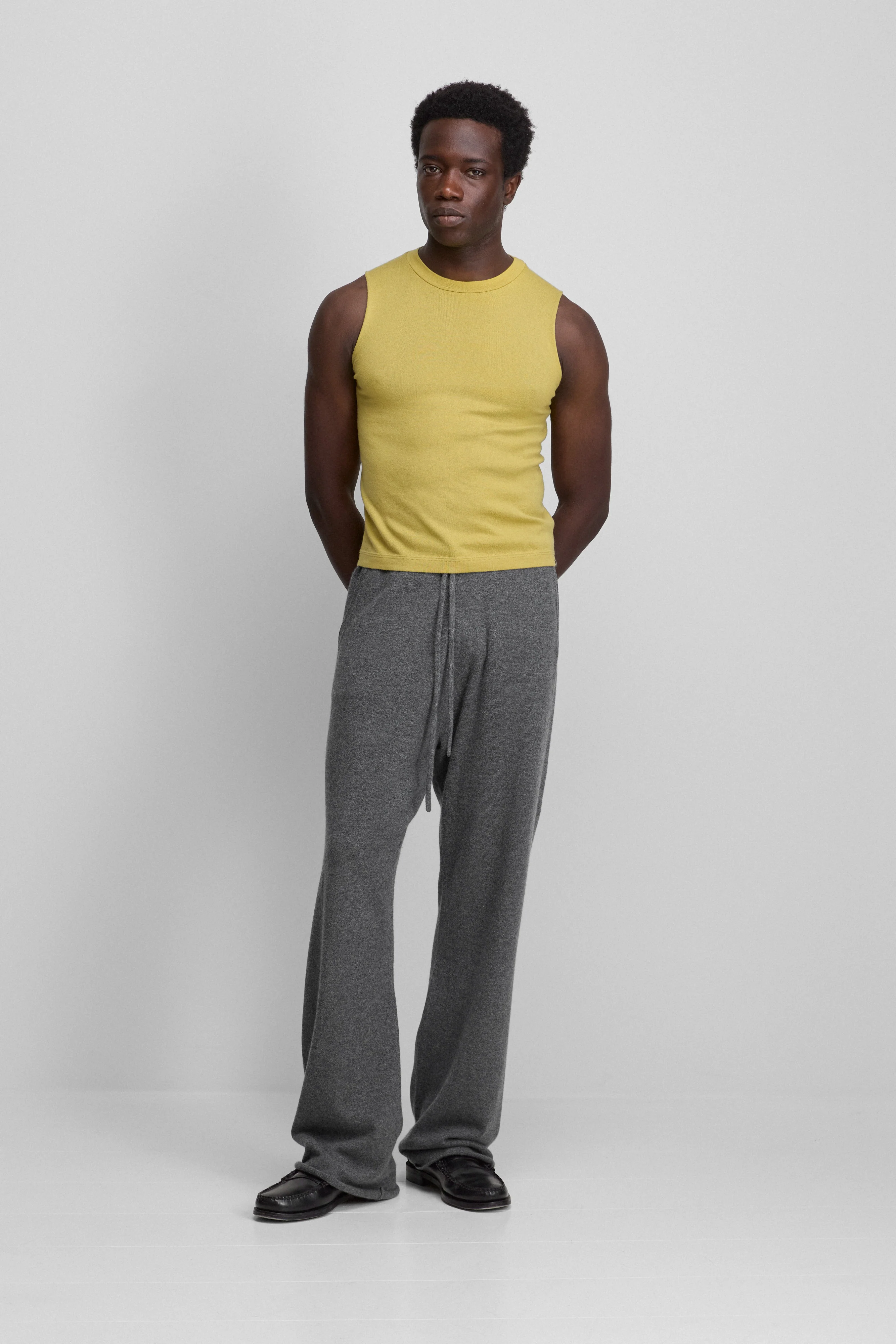 the player is a soft, skin-hugging muscle fit tank top in our breathable cotton cashmere blend. finished with a flatlock hem, this sleeveless top with a short and boxy silhouette is a comfortable staple for all seasons.